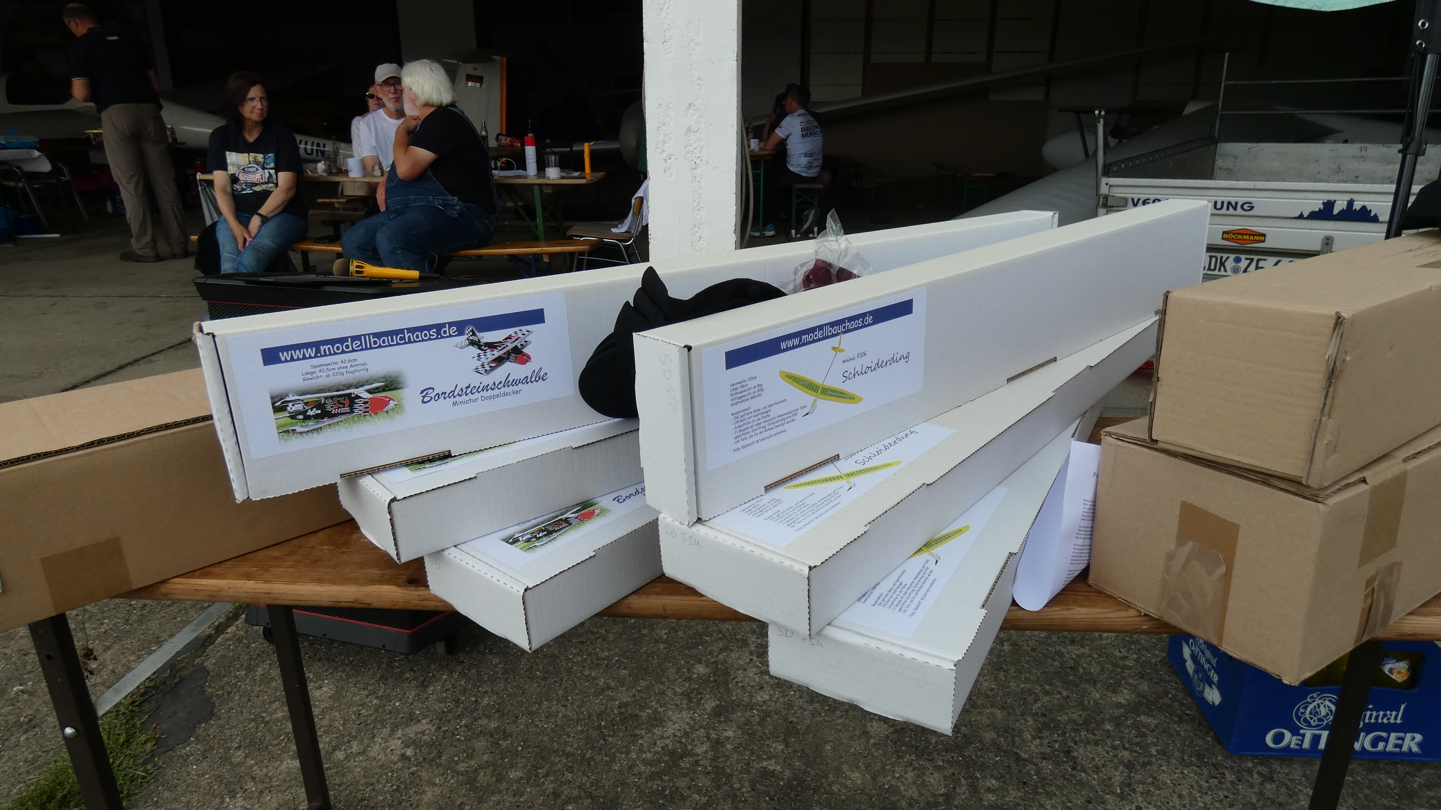 Nachdem die Vorbereitungen am Freitag recht flüssig liefen und ein großer Teil der Piloten bereits anreiste, konnte bereits das Gelände auf Thermiktauglichkeit getestet werden. Der dann noch herrschende Südwind ermöglichte es manchen, mit ihrem RES-Segler an der "Hangkante" der Flugzeughalle im Hangaufwind zu fliegen, nur wenige Meter über dem Gebäude. Sehr spektakulär mit einem 2m-2-Achs-Segler!